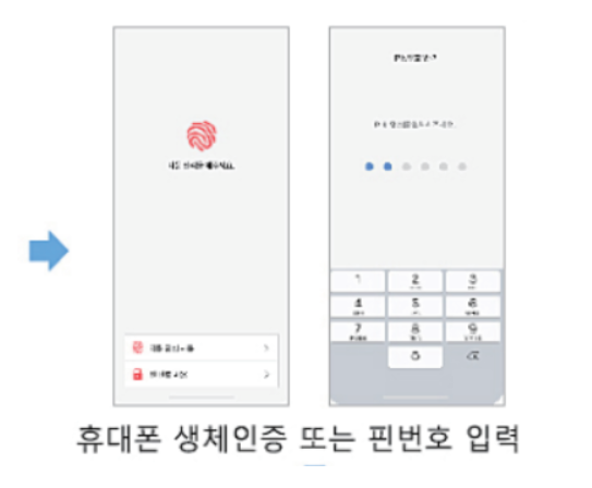 5-4. 휴대폰의 생체인증 이나 핀번호를 입력합니다.