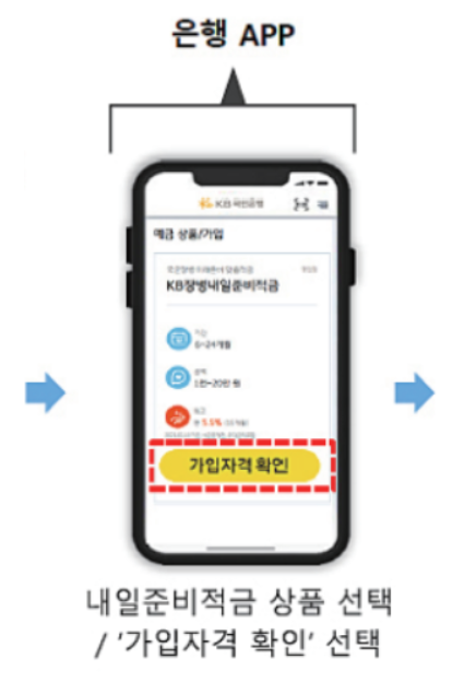 5-2. 해당은행 앱의 내일준비적금 상품을 선택한 후 "가입자격 확인" 버튼을 선택합니다.
